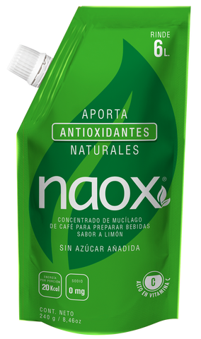 Naox es una bebida funcional que proviene del concentrado de mucilago del café, rico en antioxidantes naturales que combaten la oxidación de nuestro cuerpo a causa de los radicales libres, su alto contenido en vitamina C ayuda a fortalecer el sistema inmunológico y contribuye a la regeneración celular, ayudan a llevar un estilo de vida saludable, acompañado de una dieta balanceada y ejercicio.