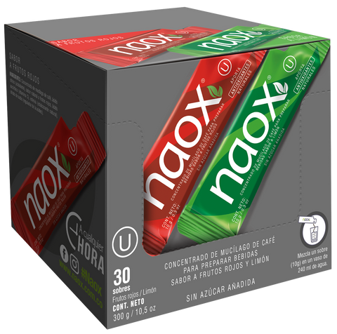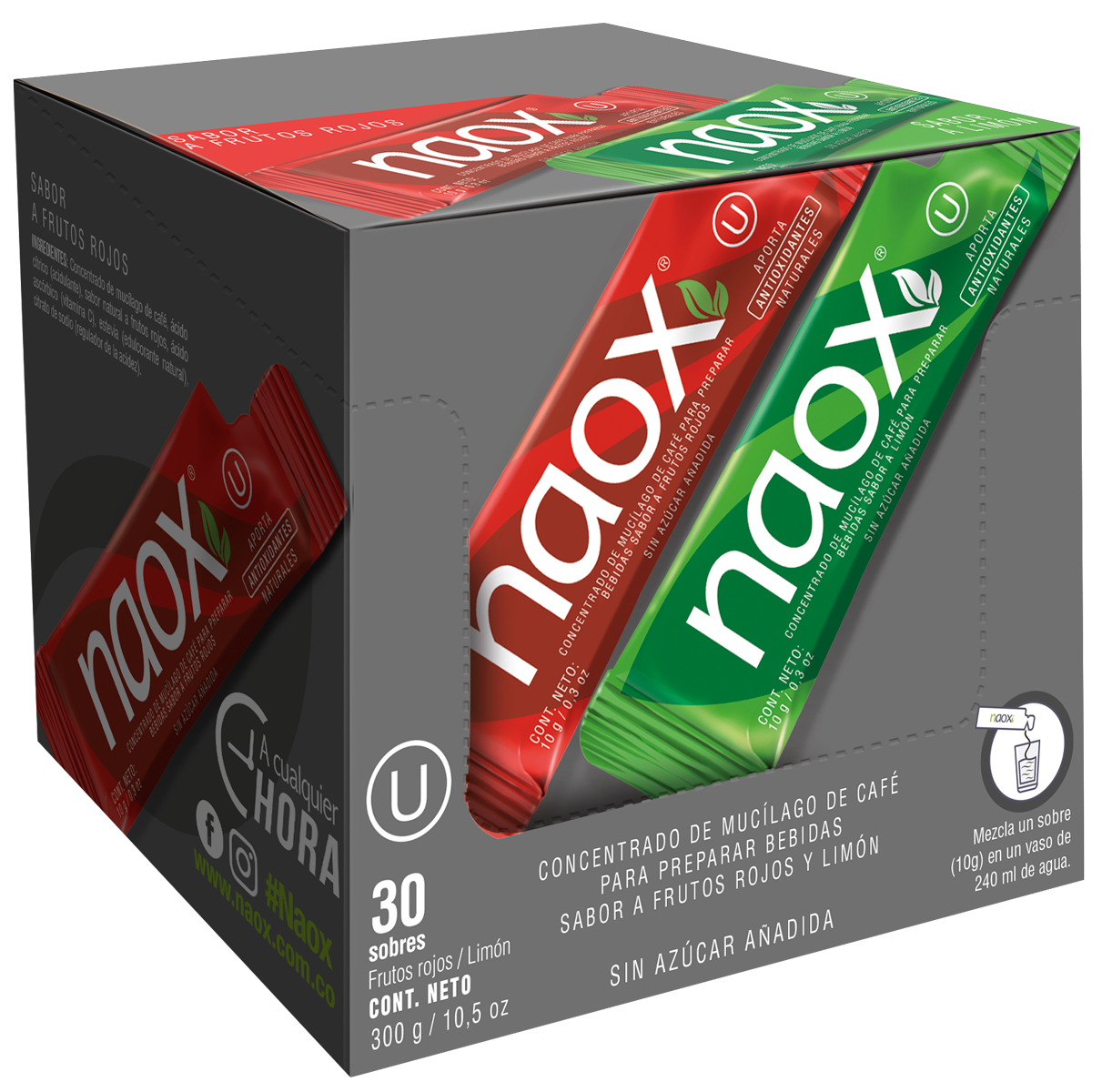 Naox es una bebida funcional que proviene del concentrado de mucilago del café, rico en antioxidantes naturales que combaten la oxidación de nuestro cuerpo a causa de los radicales libres, su alto contenido en vitamina C ayuda a fortalecer el sistema inmunológico y contribuye a la regeneración celular, ayudan a llevar un estilo de vida saludable, acompañado de una dieta balanceada y ejercicio.